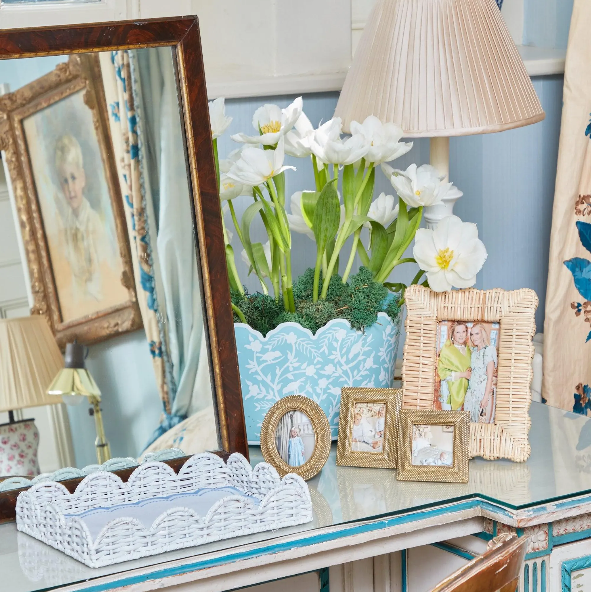 This Charming Scalloped Tray In Chic White Rattan Has A Multitude Of Uses But Would Be Ideal As A Drinks Tray Or Used On A Bedside Or Dressing Table.Pair It With Our Green Ikat Tablecloth, Serena Applique Placemats & Lily Of The Valley Tea Cup & Saucer.Size: H 5.5Cm X W 20Cm X L 30Cm Care Instructions: Gently Wipe With A Damp Cloth