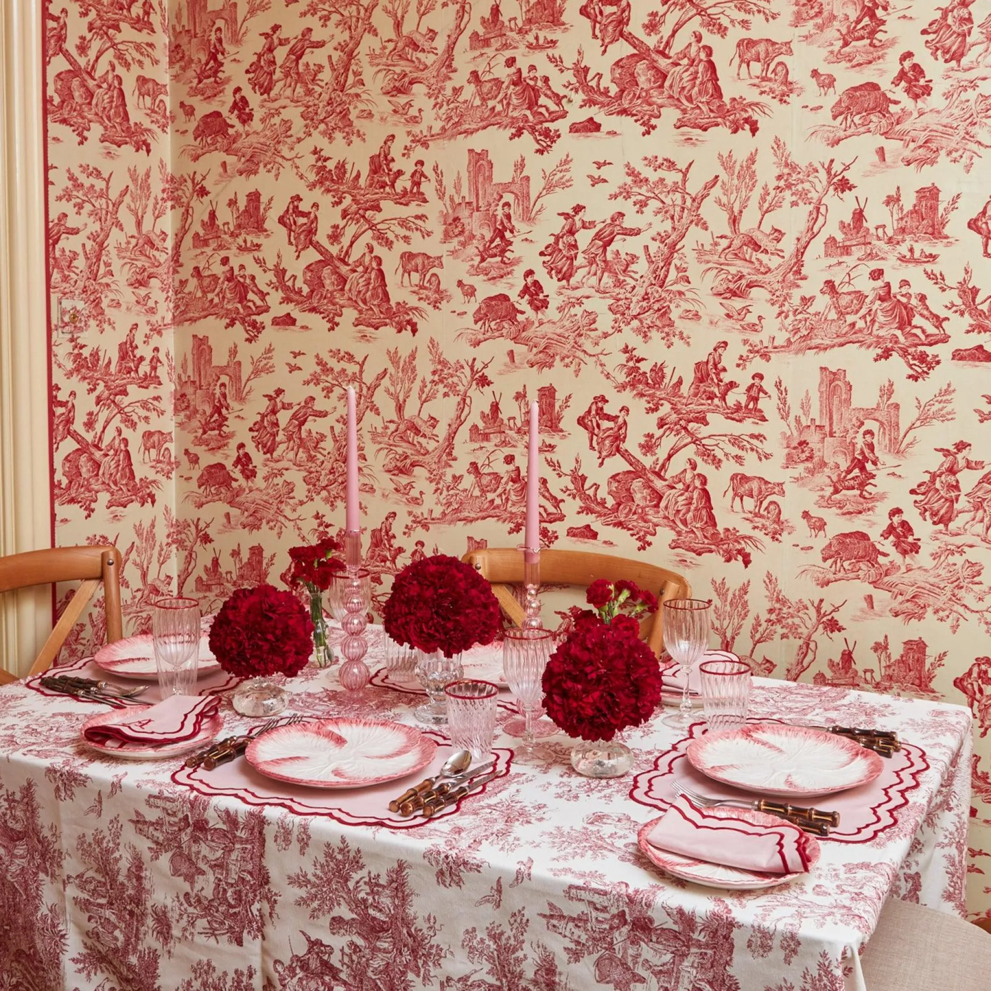 This Romantic Tablecloth In Beautiful White And Burgundy Features A Charming Toile Design With Scenes Of Enchanting French Rural Life.With A Matching Border, This Stylish Tablecloth Is Designed To Be The Base For Our Valerie Pink Placemats & Napkins, Pink Capri Lettuce Dinner Plates & Bamboo Cutlery.Size:Medium: 180Cm X 270Cm (71″ X 106″)Large: 180Cm X 304Cm (71″ X 119″)Care Instructions: Machine Wash On A Cold Cycle Or Hand Wash And Leave To Air Dry.Do Not Tumble Dryiron On Reverse
