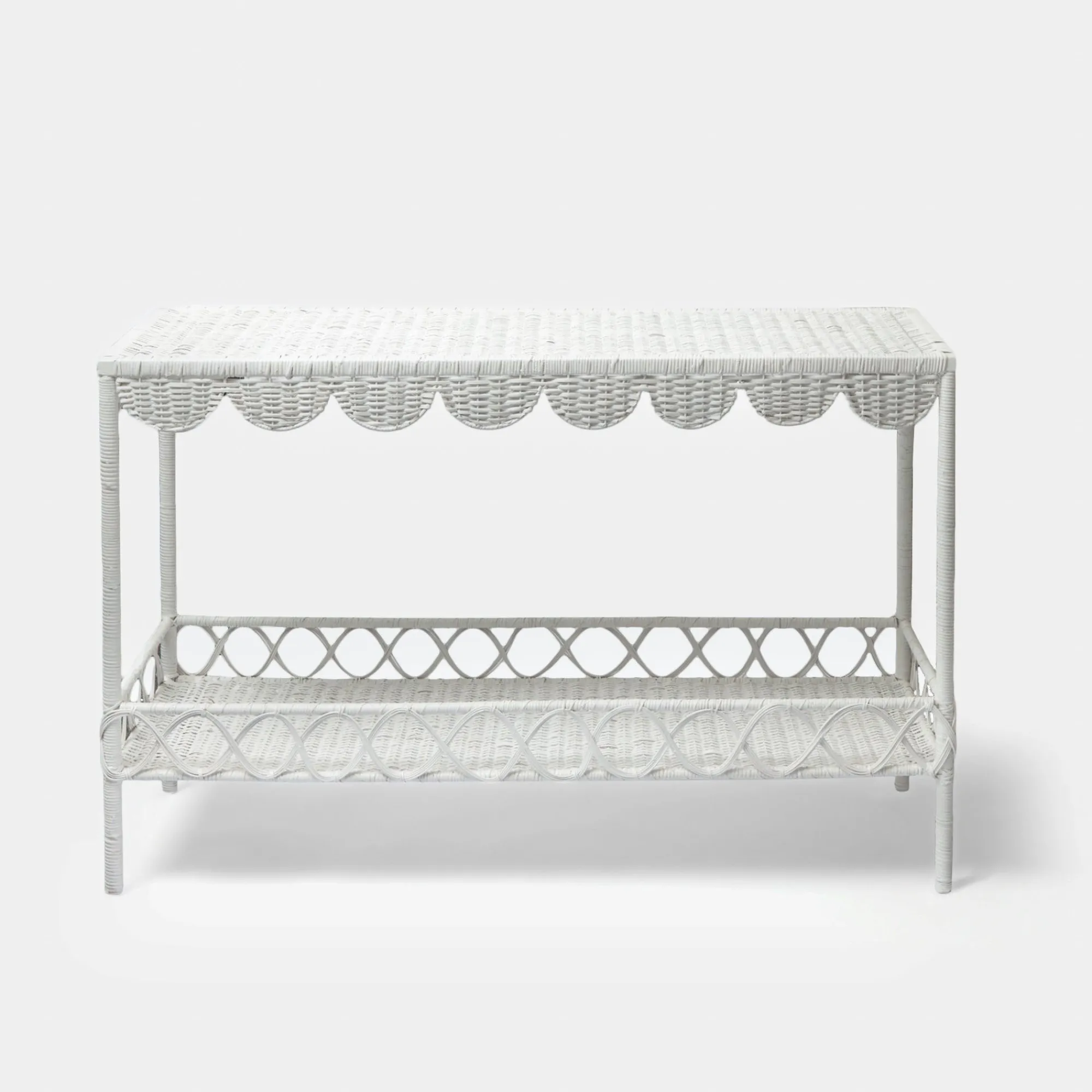Hot Madeleine White Rattan Scalloped Console Table Rattan Furniture