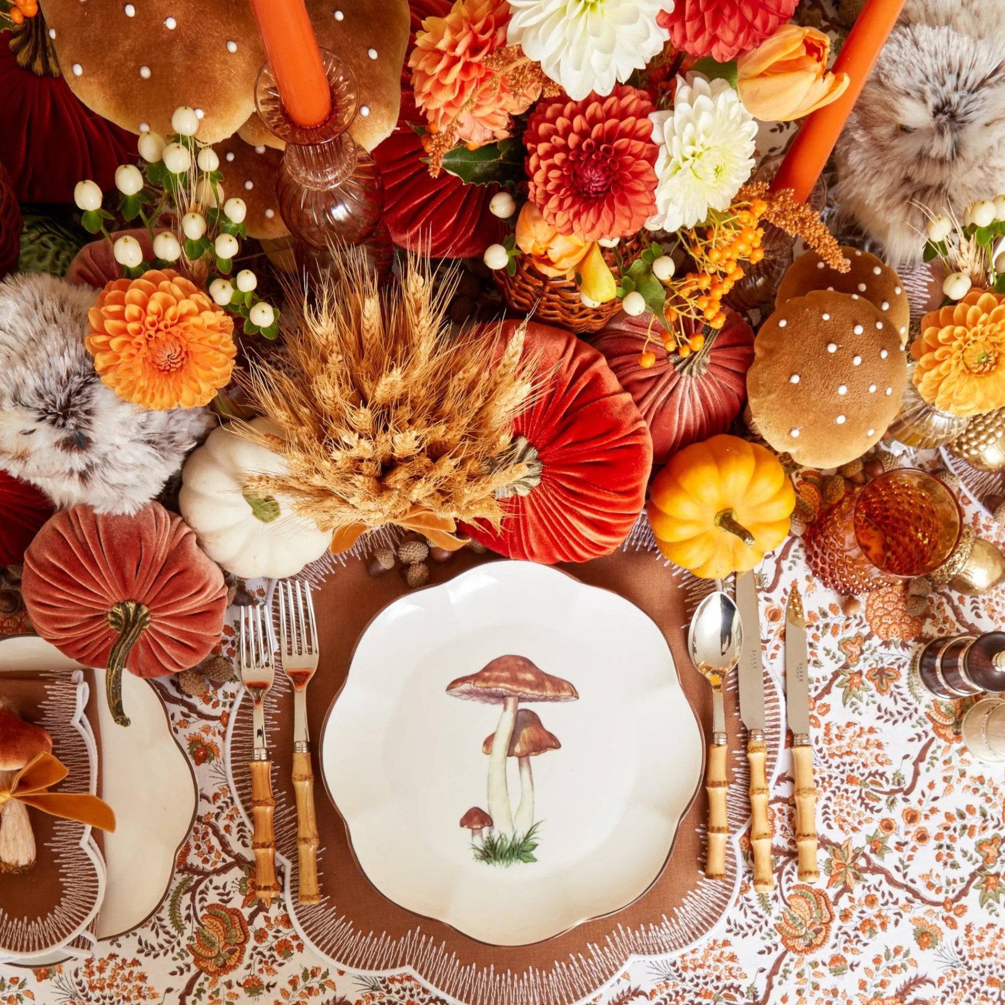 Alice’s Limited Edition Mushroom Dinner Plates Feature Designs By Her Sister-In-Law And Artist Florence Houston. Their Fine, Hand Painted Chocolate Brown Rim And Intricate Watercolour Design Were Applied By Artisans In Stoke-On-Trent, The Home Of English Pottery.Lay Them With Our Leaves Of Autumn Tablecloth, Alathea Caramel Linens & Burnt Bamboo Cutlery.Size: 25 Cm Diameter