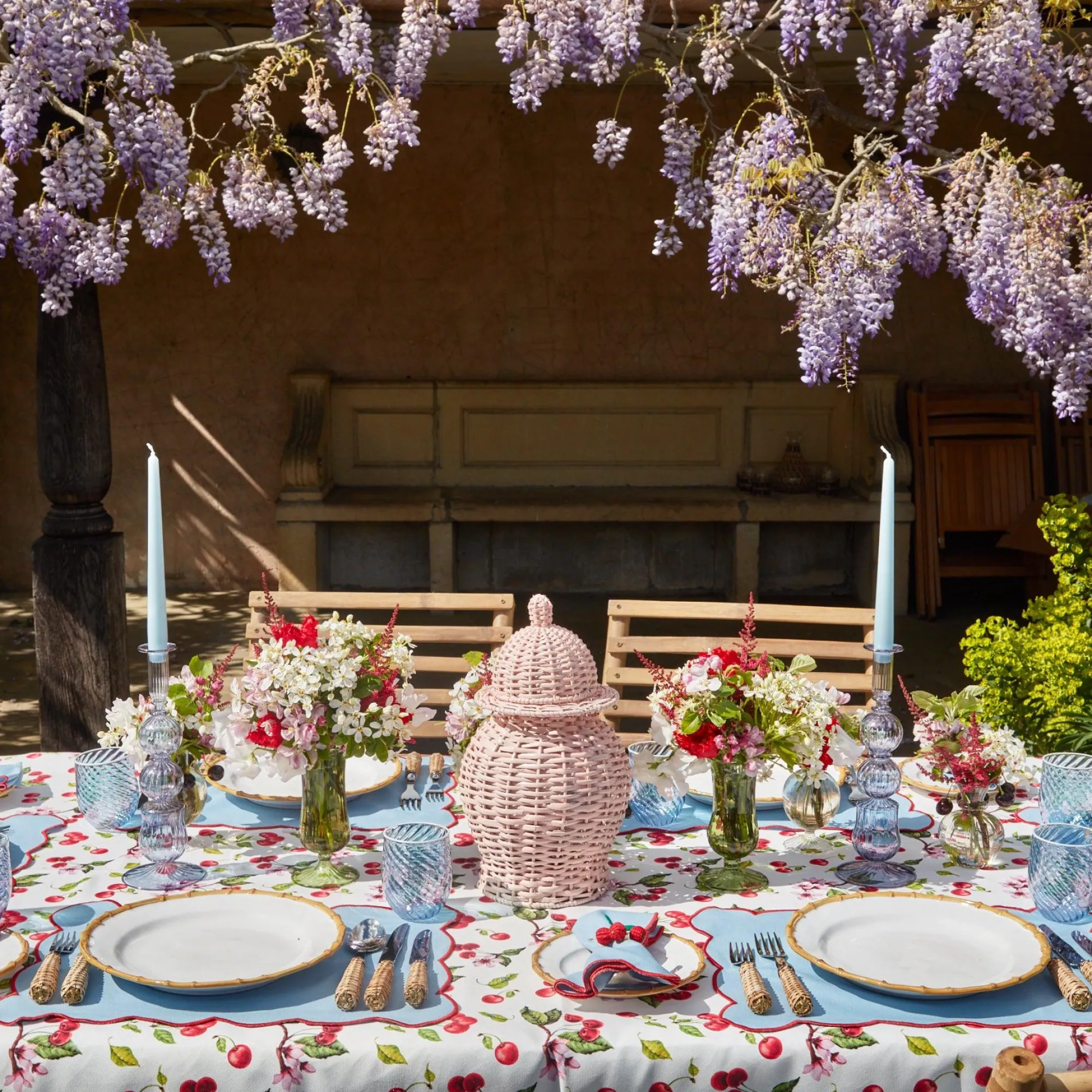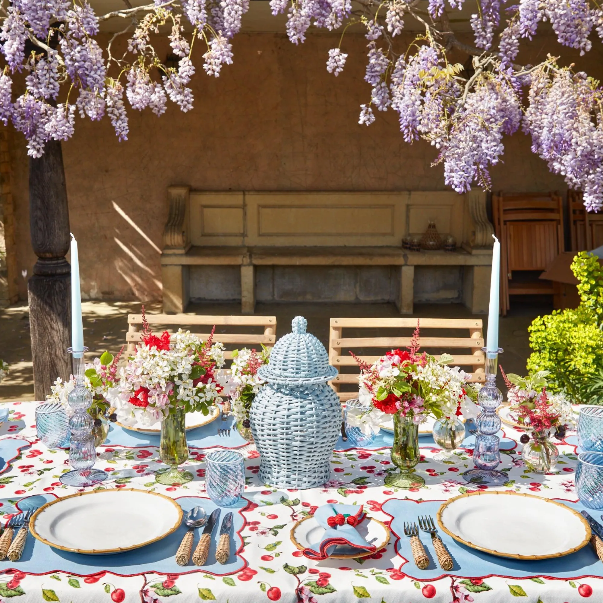 These Stunning Sky Blue Placemats, Designed For Matches Fashion, Come With A Vibrant Red Scalloped Edge.They Will Look Beautiful Laid With Our Matching Blue With Red Scallop Napkins On Our Red Cherry Tablecloth And Accompanied By Our Rattan Cutlery To Complete The Look.Product Size: 47 X 35 Cmproduct Info: 100% Cotton, Water Resistant.Care Instructions: Wash On Delicate Cycle. Do Not Tumble Dry.For Bespoke Quantity Of Placemats And Napkins Please Email [email protected].