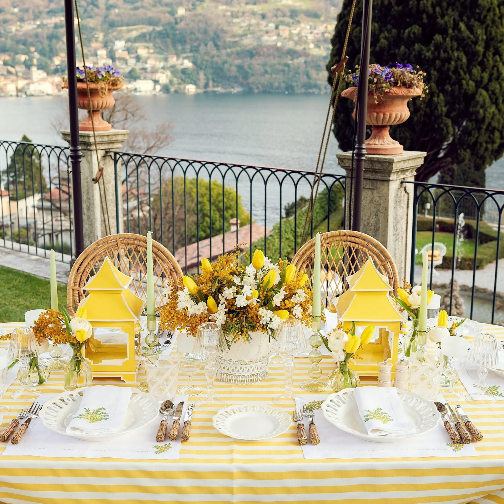 Our Joyful Passalacqua Striped Yellow Tablecloth & Mimosa White Linen Set Adds Italian-Inspired Sunshine To Any Table.Including White Linen Placemats And Napkins With Their Elegant Embroidered Mimosa Bouquets And Hemstitch Borders This Set Will Instantly Create The Most Uplifting Of Summer Tables.Set Includes:Medium (4 Settings)X1 Passalacqua Yellow Stripe Tablecloth – Medium (W 170Cm L 265Cm)X4 Mimosa White Linen Placemats (45Cm X 45Cm)X4 Mimosa White Linen Napkin (45Cm X 45Cm)Medium (6 Settings)X1 Passalacqua Yellow Stripe Tablecloth – Medium (W 170Cm L 265Cm)X6 Mimosa White Linen Placemats (45Cm X 45Cm)X6 Mimosa White Linen Napkin (45Cm X 45Cm)Large (8 Settings)X1 Passalacqua Yellow Stripe Tablecloth – Large (W 180Cm L 304Cm)X8 Mimosa White Linen Placemats (45Cm X 45Cm)X8 Mimosa White Linen Napkin (45Cm X 45Cm)Care Instructions: Hand Wash With Colddo Not Tumble Dryiron On Reverse