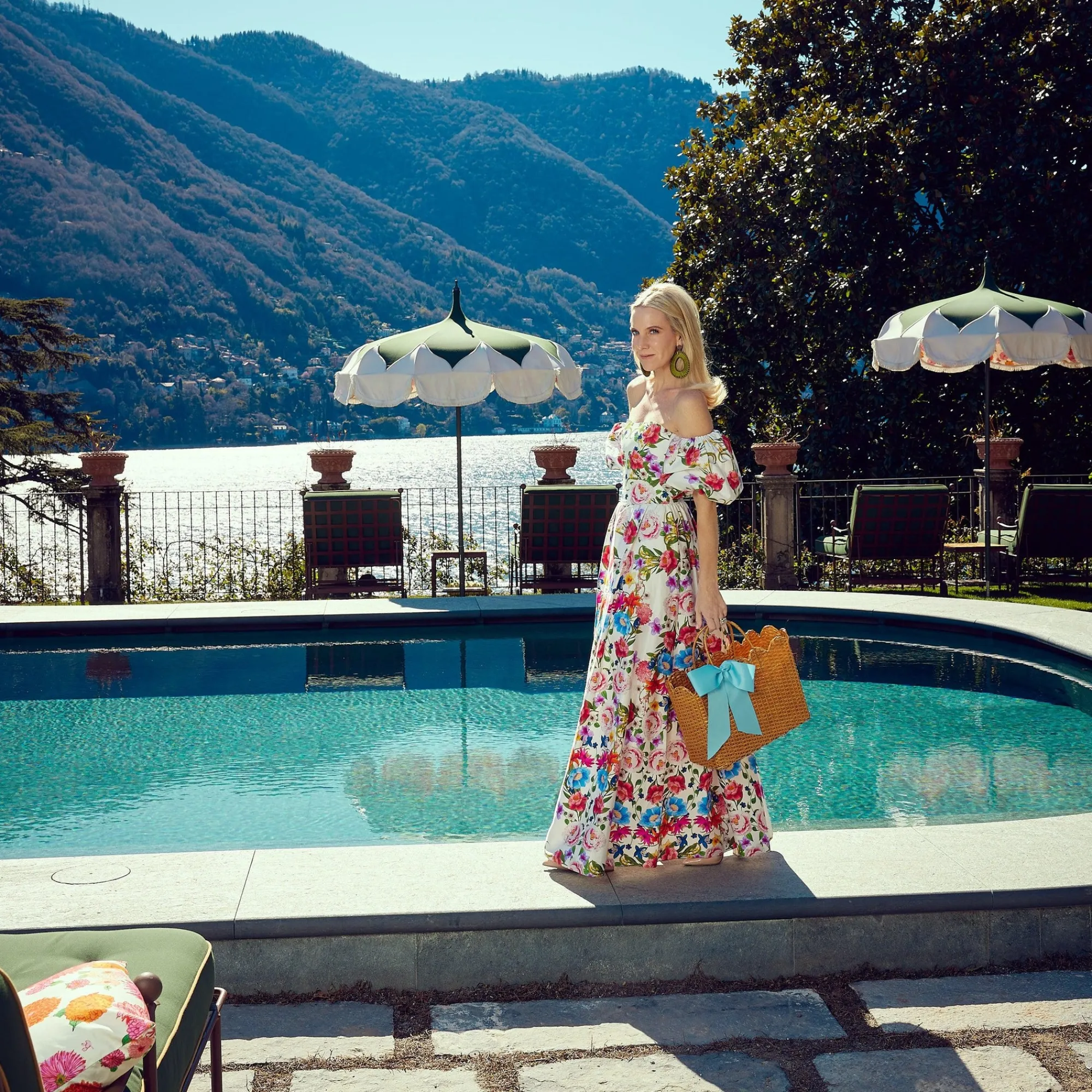 Chic And Scalloped, This Elegant Rattan Tote Bag Is A Trusty Companion For Daily Life And The Perfect Partner On Holidays Too.Made From A Natural Rattan Weave, It Comes With A Pretty Blue Bow. Take It Everywhere, To The Shops, The Beach, It Truly Is… This Summer’s Most Exquisite Accessory.Shot By The Pool At Passalacqua, Lake Como.Size: H 35Cm X W 28Cm.