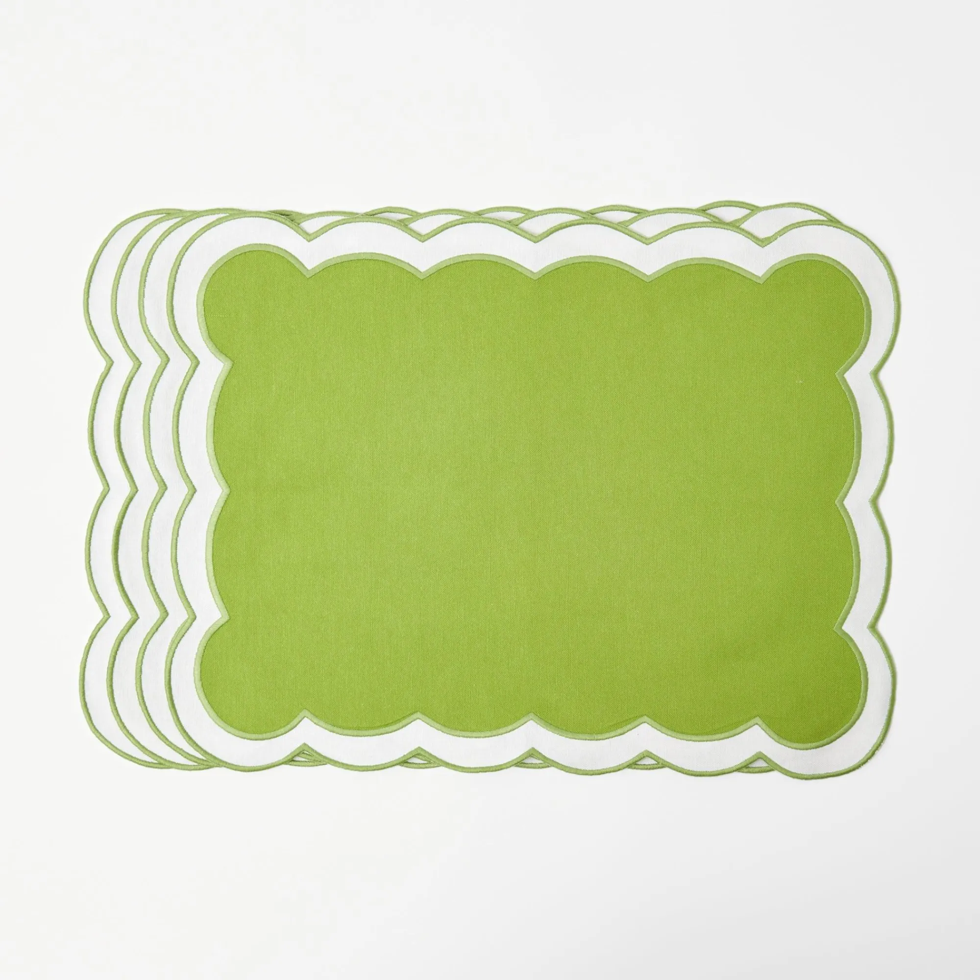 A Special Set Of Apple Green Scalloped Applique Placemats With A Double Embroidered Edge And Border In Crisp White.One Set Includes:X 4 Serena Applique Green Placematsthis Delightful Linen Set, Designed In A New Square Scalloped Shape Pairs Beautifully With Our Serena Applique Green Napkins, Seville Green Gardenia Dinner & Starter Plates And Ivory Cutlery.Product Size: Placemat 49 Cm Wide X 38Cm Highproduct Info: 100% Cotton, Water Resistant.Care Instructions: Machine Wash On A Cold Cycle Or Hand Wash And Leave To Air Dry.For Bespoke Quantity Of Placemats And Napkins Please Email [email protected].