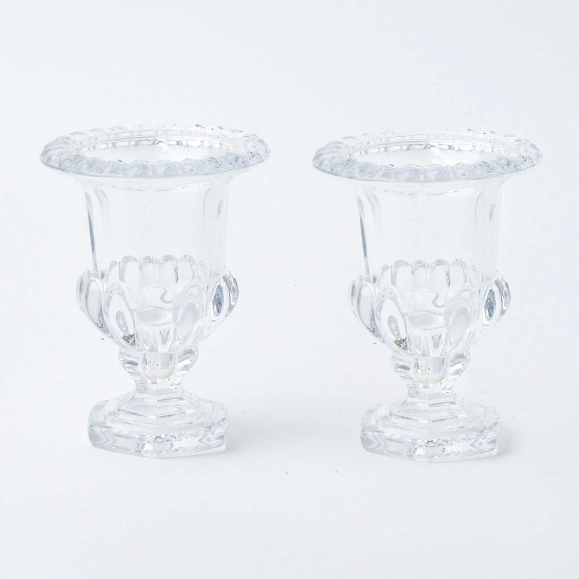 This Versatile Pair Of Glass Vases In The Shape Of A Classical Roman Urn Will Beautifully Adorn Any Table.Pair It With Our Heidi Tablecloth, Beatrice Forest Green Linen & Natural Wood Nutcrackers.Size: 15 Cm