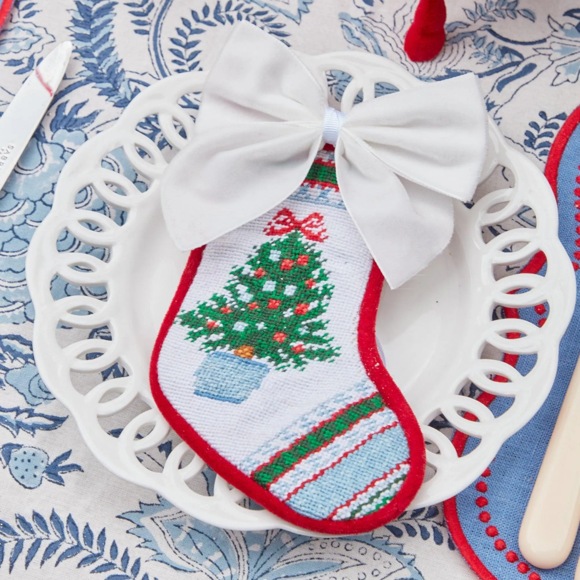 This Lovely Set Of Snow White Velvet Napkin Bows Were Designed For Mrs. Alice And Handmade In France.These Tasteful Bows Can Be Tied Around Any Napkin And Look Perfect Matched With Our Gold Snowflake Linen And White Lace Dinner Plates.One Set Includes:X4 Snow White Velvet Napkin Bows