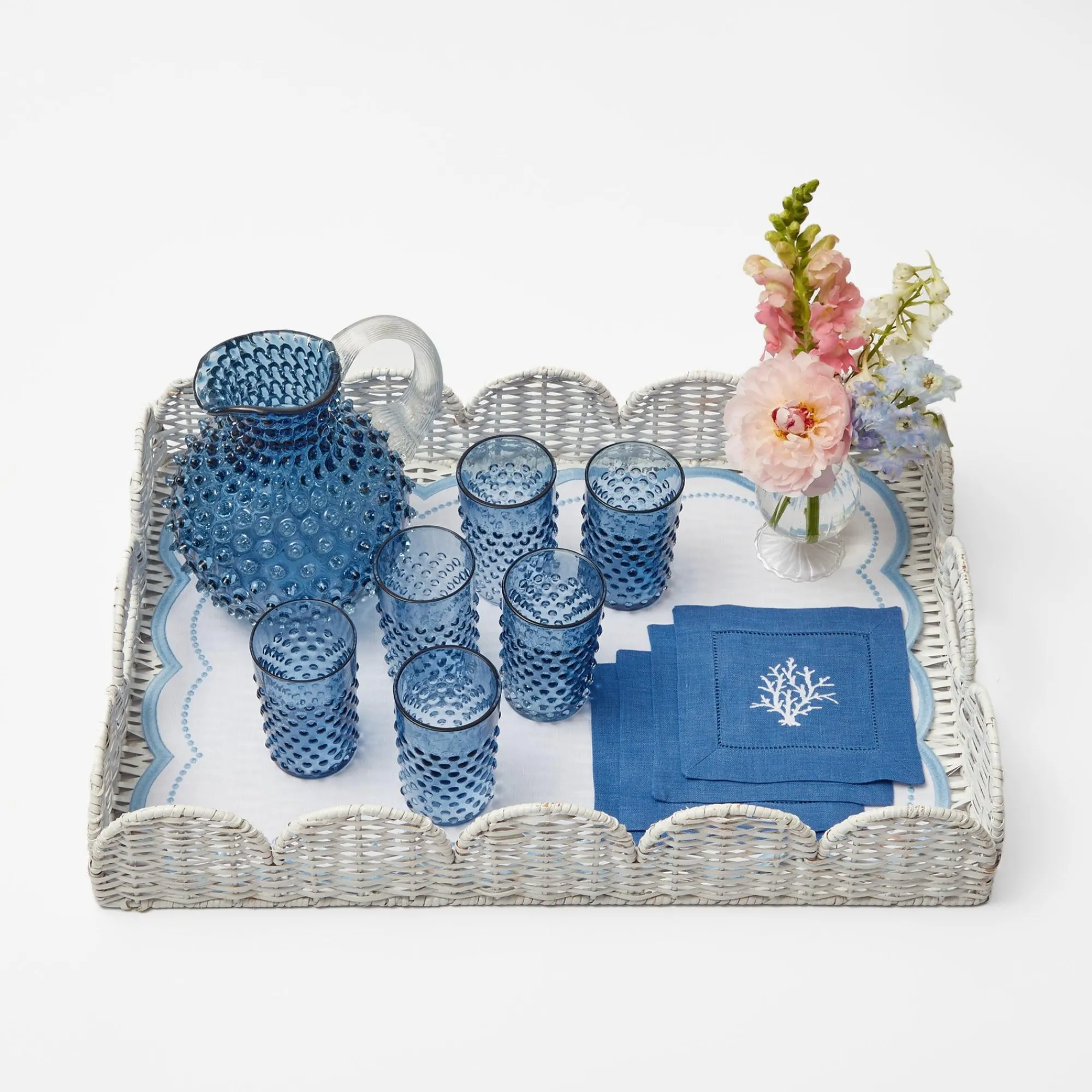 Our Delightful Coral Blue Linen Cocktail Napkins Feature White Coral Embroidery On Pure Linen. Elegant In French Blue Wi…